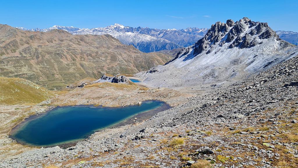 Am Pass eröffnet sich ein einzigartiger Ausblick über den kleinen Furkelsee an der Nordseite des Passes, bis hinüber zu den Gipfeln um die Gamsspitze in den Ötztaler Alpen.