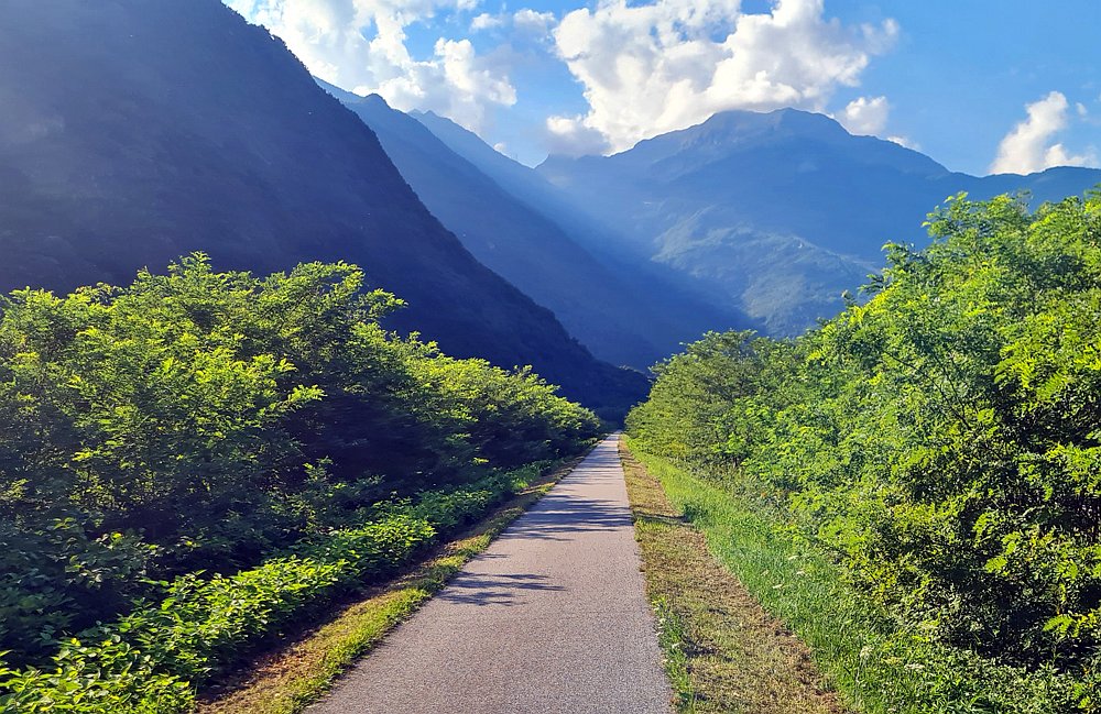 - Gut ausgebaute Radwege in den Tälern, kleine Sträßchen in den Passauf- und abfahrten